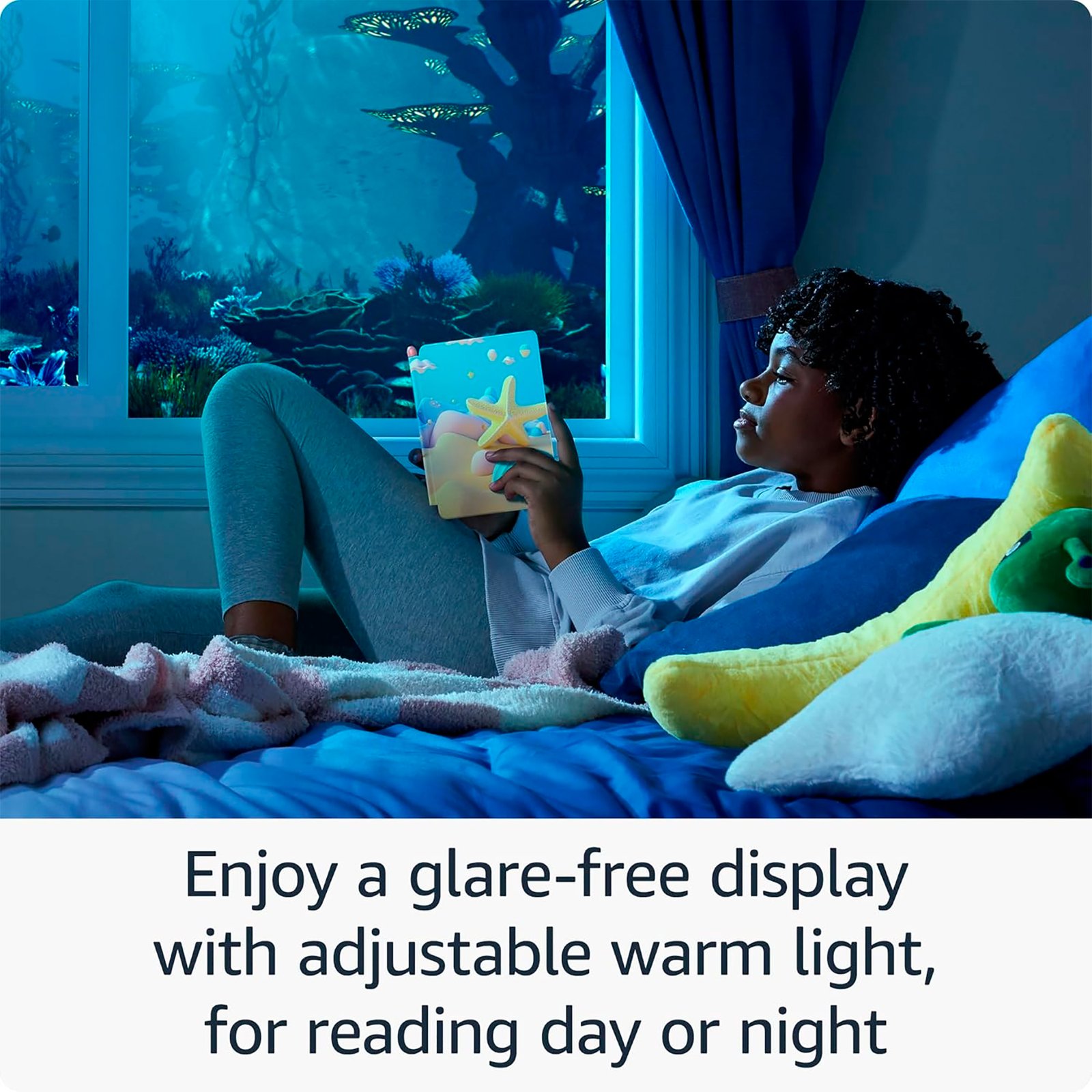 Ajusta la pantalla antideslumbrante desde iluminación blanca a ámbar para una lectura cómoda en interiores y exteriores, de día y de noche. Además, establece una hora de dormir para cada perfil infantil en el panel de control parental.