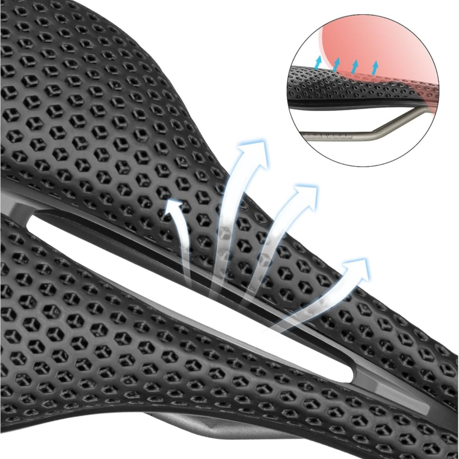 El asiento de bicicleta ROCKBROS utiliza material compuesto de poliuretano y tecnología de impresión digital continua de curado por luz (DLP), estructura de celosía hueca elástica, absorción de impactos, con ventilación de reducción de presión y resistencia transpirable, el ciclista se sentirá cómodo después de un largo viaje.