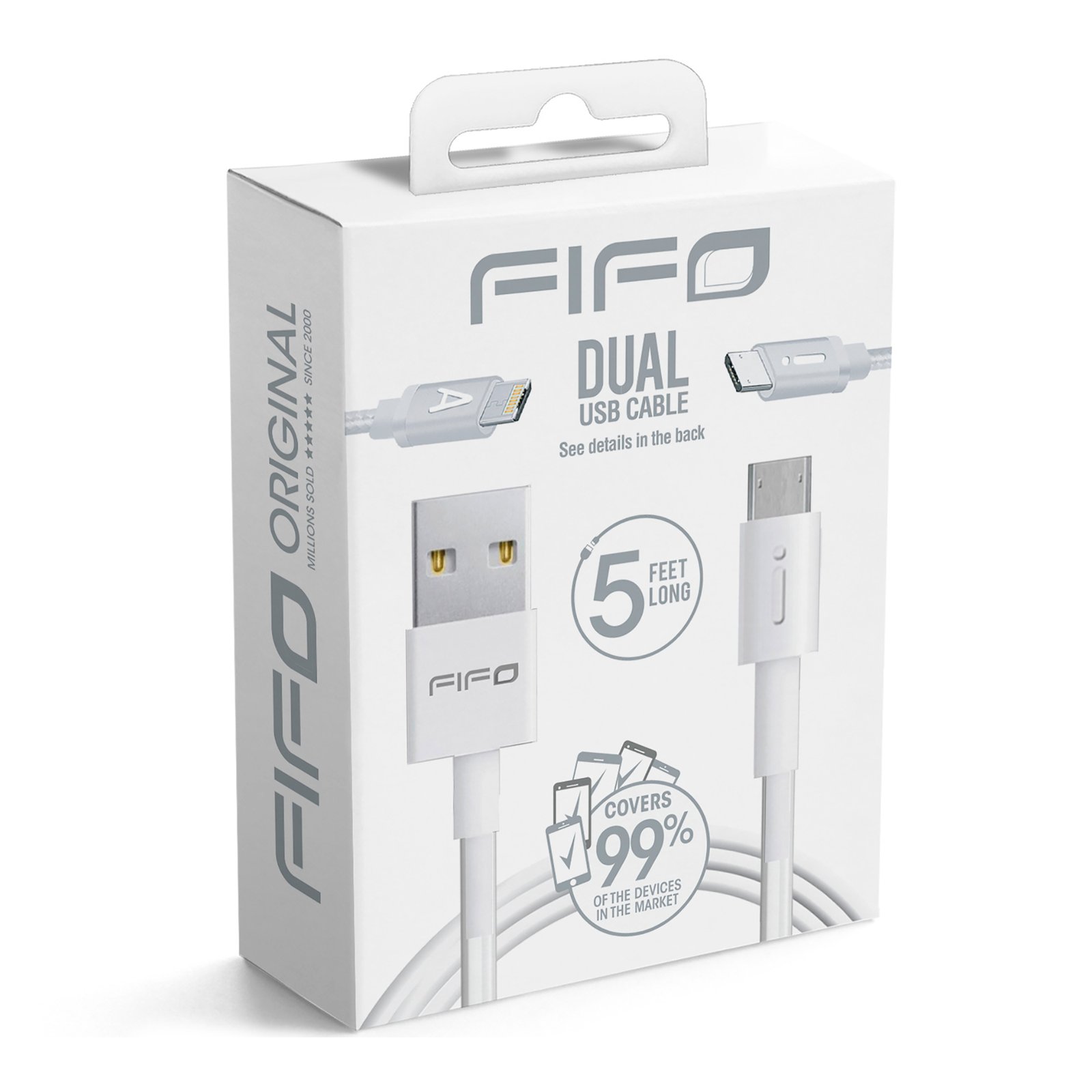 FIFO – CABLE USB DOBLE CARA 47006 – IOS / ANDROID. 1.5m. Color: Blanco.