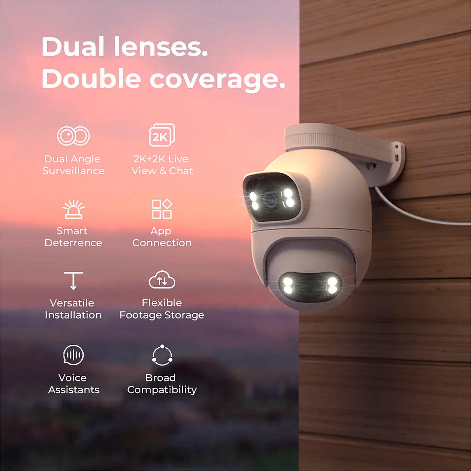 La cámara IMILAB EC6 Dual 2K+2K es una cámara de doble lente con una resolución de 2K cada una, lo que permite cubrir dos ángulos diferentes al mismo tiempo, brindando total seguridad y comodidad con una doble cobertura..