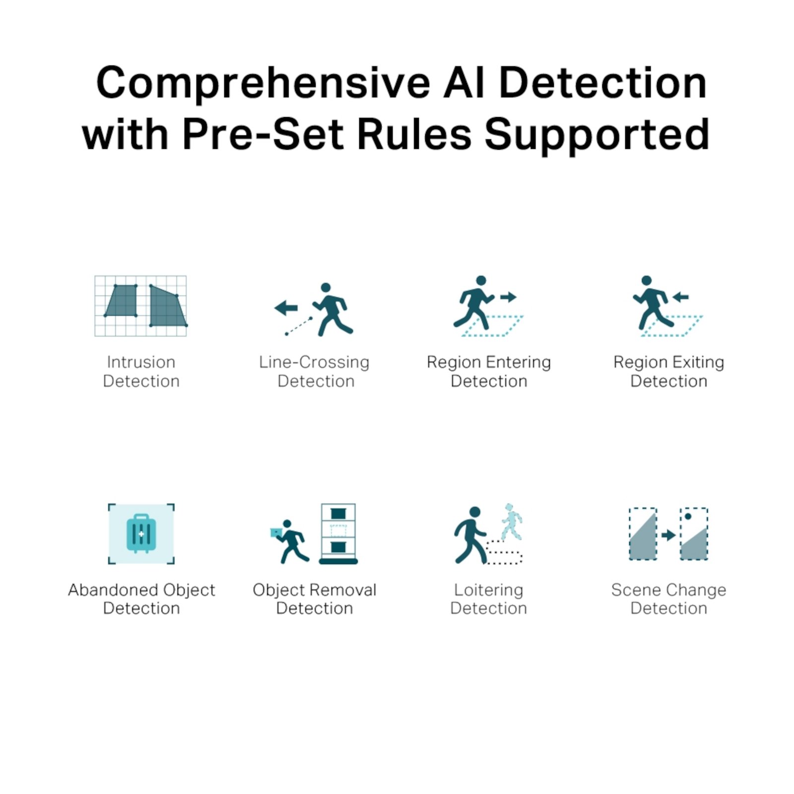 Detección inteligente. Detecta de forma activa eventos anómalos como la intrusión en áreas y el cruce de líneas, enviándole notificaciones al instante.