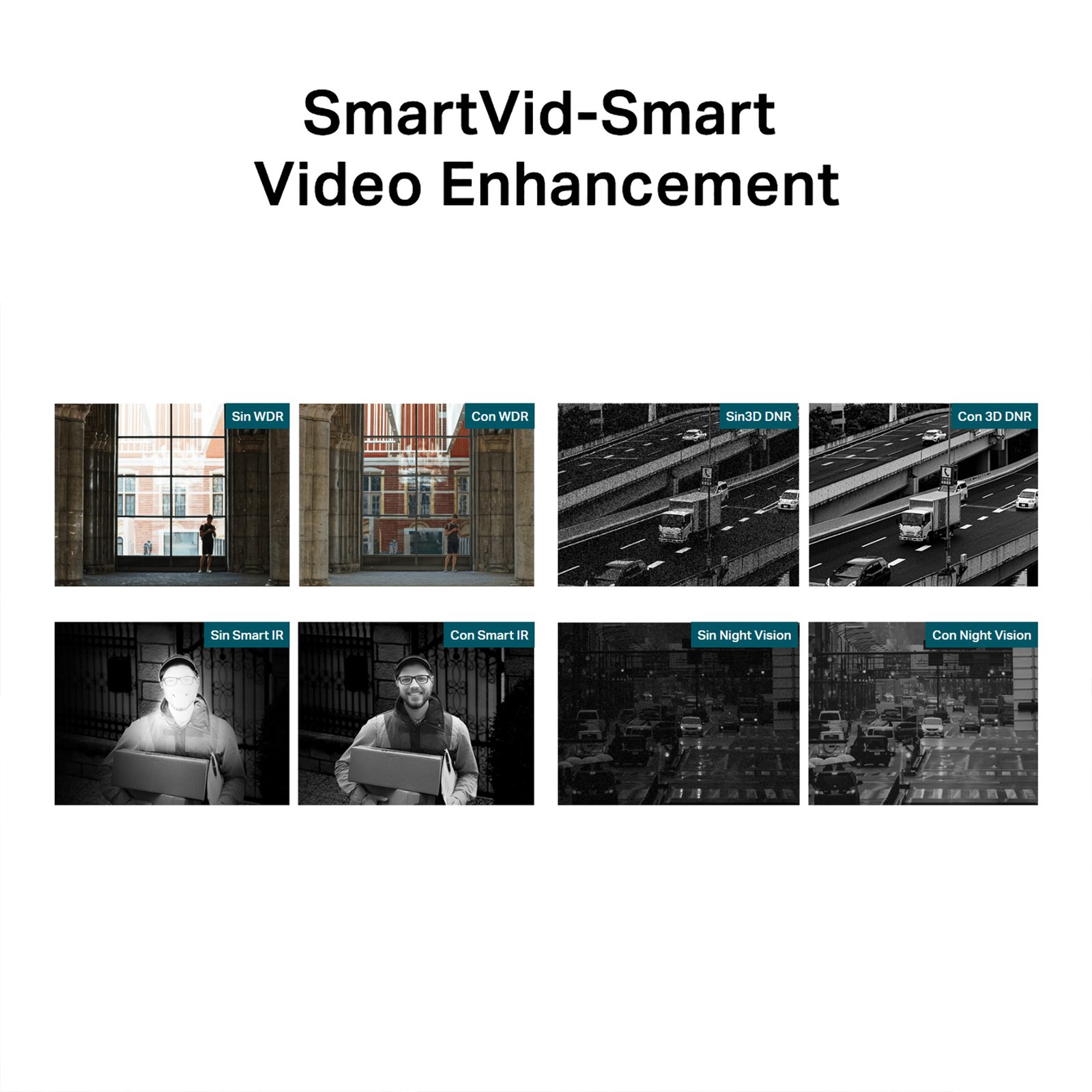 Mejora inteligente de videos. Las tecnologías profesionales de VIGI procesan videos para mejorar en gran medida su calidad que es vital para su monitoreo, incluidos Smart IR, WDR, 3D DNR y Night Vision.