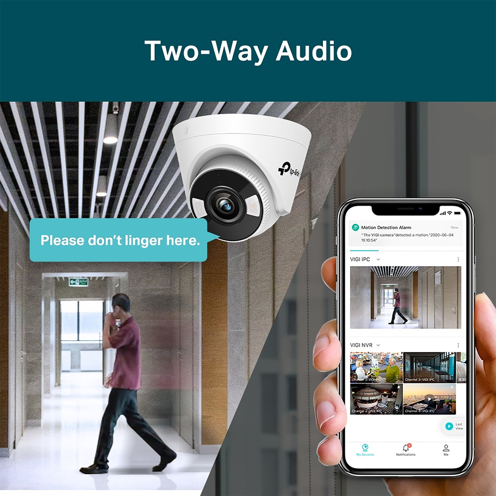 Audio bidireccional. Con la compatibilidad con intercomunicadores de voz, mantén conversaciones bidireccionales mientras ves tu canal desde cualquier lugar.