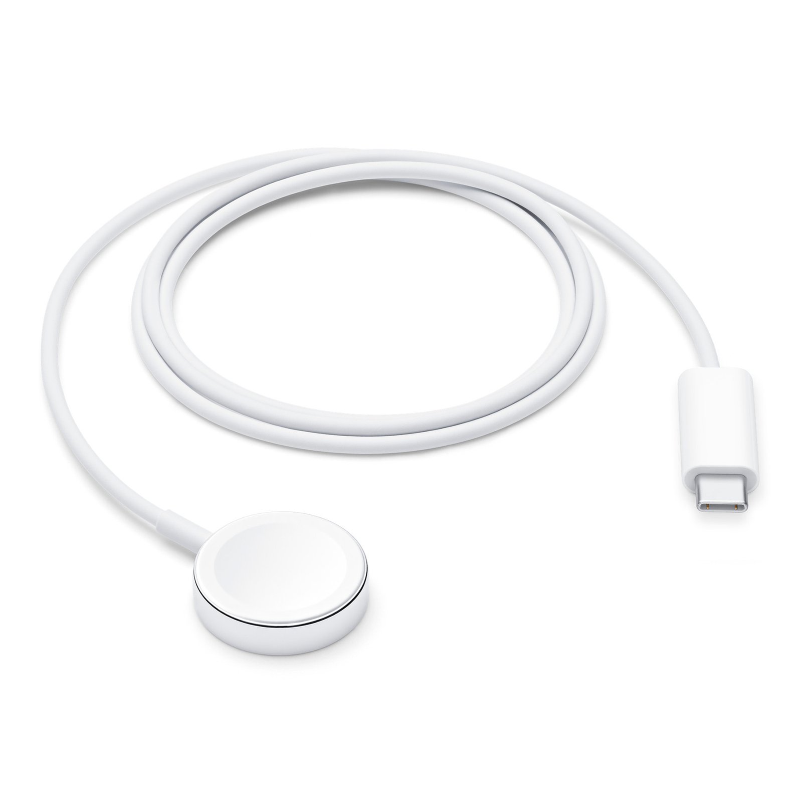 Cable USB C duradero con capacidad de carga rápida para Apple Watch. Al usarlo sostén el conector cerca de la parte posterior del reloj, donde los imanes hacen que encaje en su lugar automáticamente.