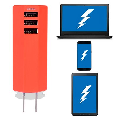 3 PUERTOS USB: 1 para notebook, 2 para dispositivos móviles como smartphones y tablets.