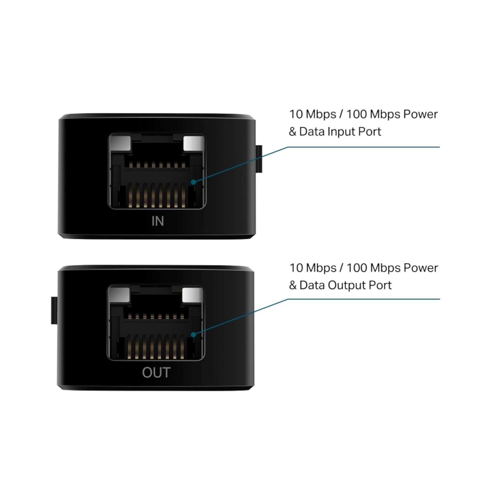 Puertos: x1 PoE IN RJ45 10/100Mbps, x1 PoE OUT RJ45 10/100Mbps.