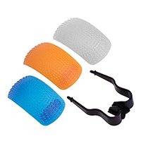 Se montan fácilmente en la ranura del soporte de la mayoría de las cámaras con un flash emergente, lo que suaviza en gran medida la calidad de la luz.