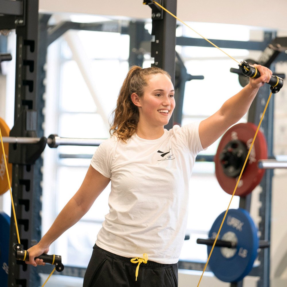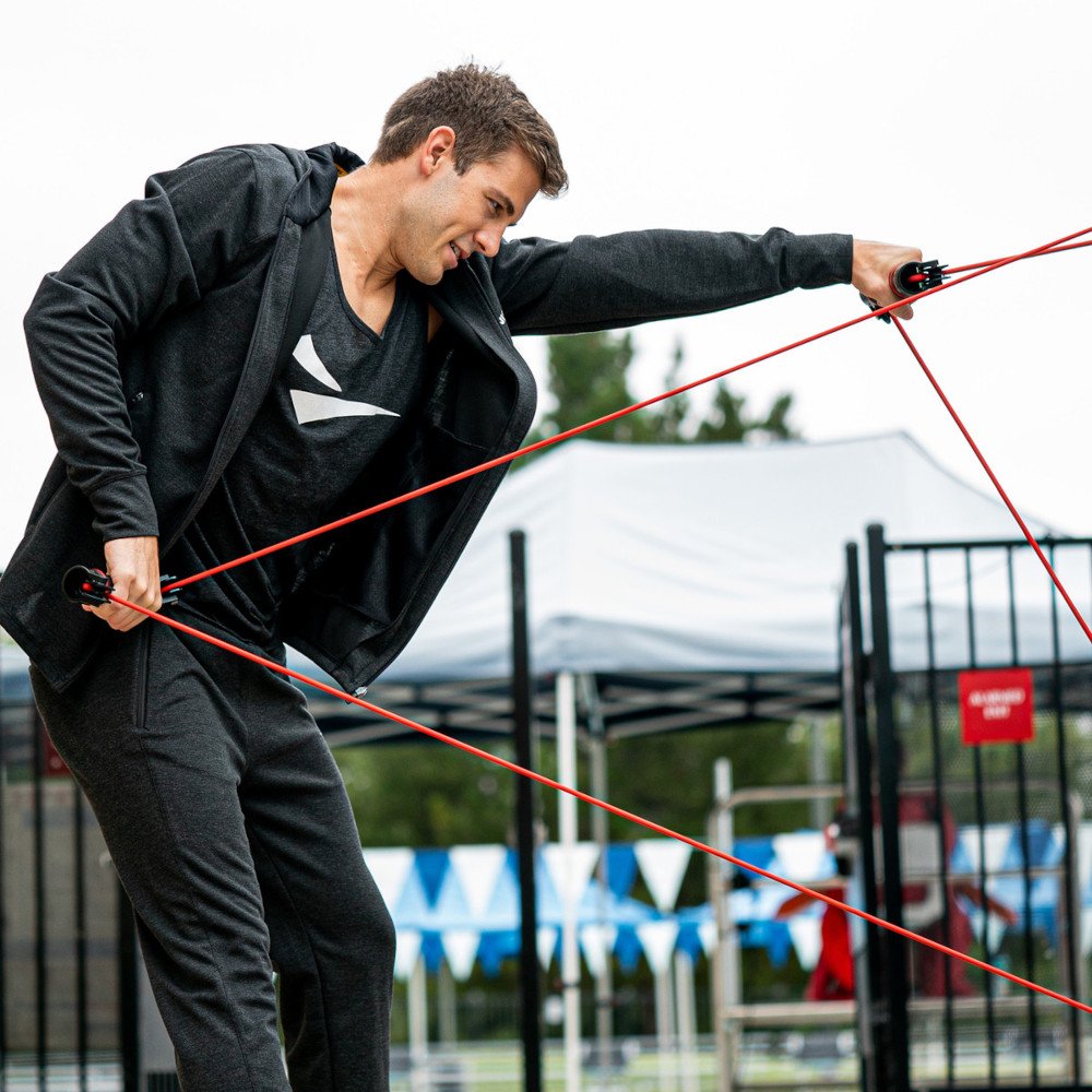 El entrenador Slide Dryland está diseñado para proporcionar a los nadadores ejercicios que imitan todo el ciclo de brazada de natación con una resistencia constante. Conecte el cable a dos puntos diferentes en una cerca de alambre (o similar) para agregar variedad y diferentes ángulos a su entrenamiento de fuerza y acondicionamiento. Las dos manijas giratorias permiten a los nadadores practicar el posicionamiento de las manos y los antebrazos sin interferencia o sobrecarga de cordón.