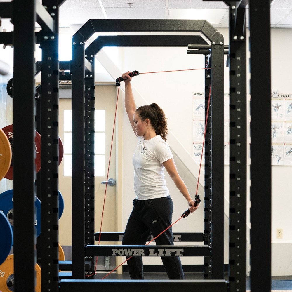 Las manijas giratorias le permiten practicar el posicionamiento de manos y antebrazos sin sobrecargar.