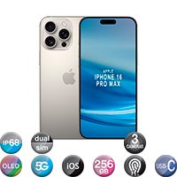 APPLE – SMARTPHONE IPHONE 16 PRO MAX – IP68. 6,9» MULTITÁCTIL SUPER RETINA XDR OLED 120Hz HDR. DUALSIM. 5G. 6 CORE. IOS 18. RAM 8GB / ROM 256GB. CÁMARA TRIPLE 48MP. WIFI. BLUETOOTH. GPS. NFC. LI-ION 4685mAh.