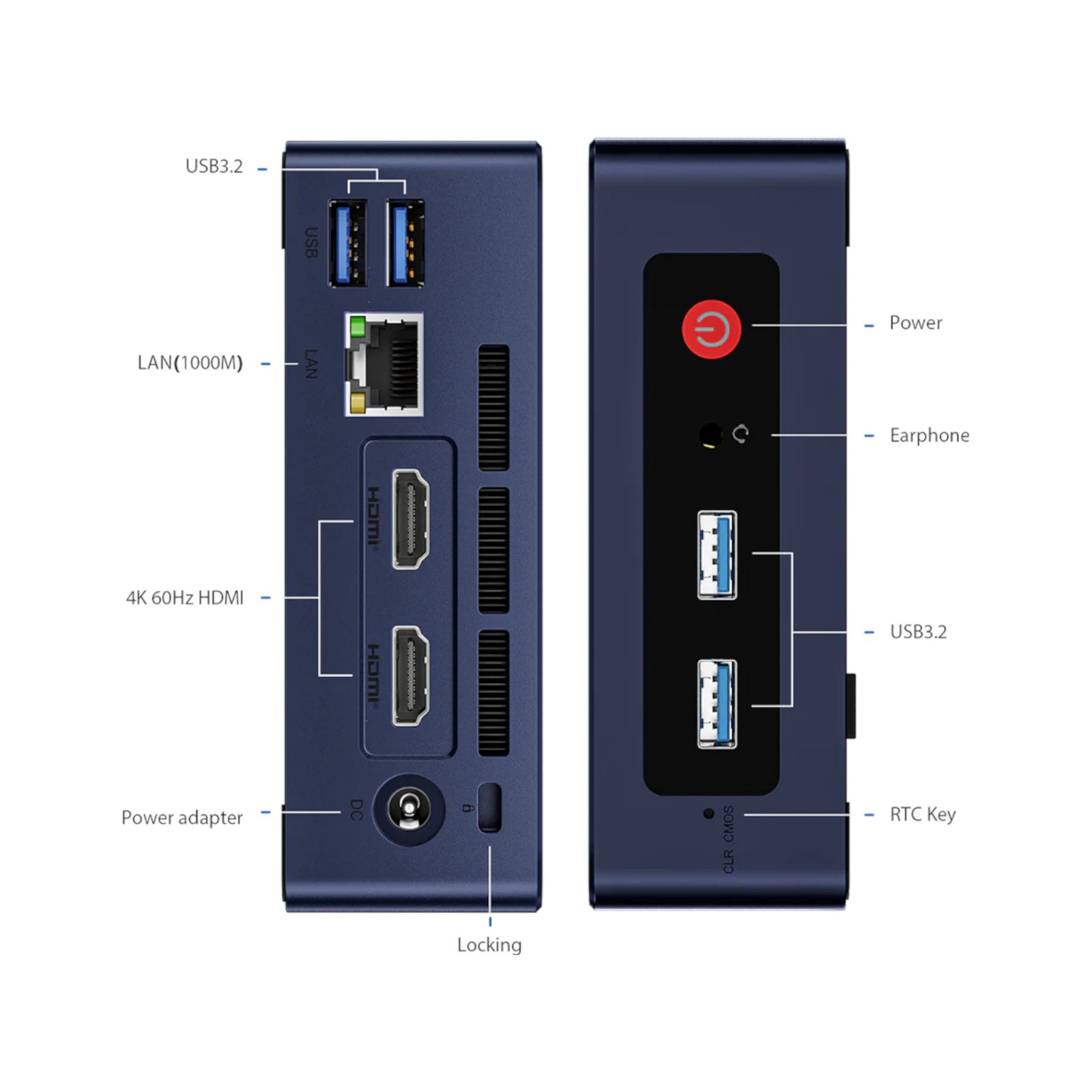 Puertos: HDMI x 2, RJ-45 x 1, USB 3.2 x 4, 3,5 mm x 1.