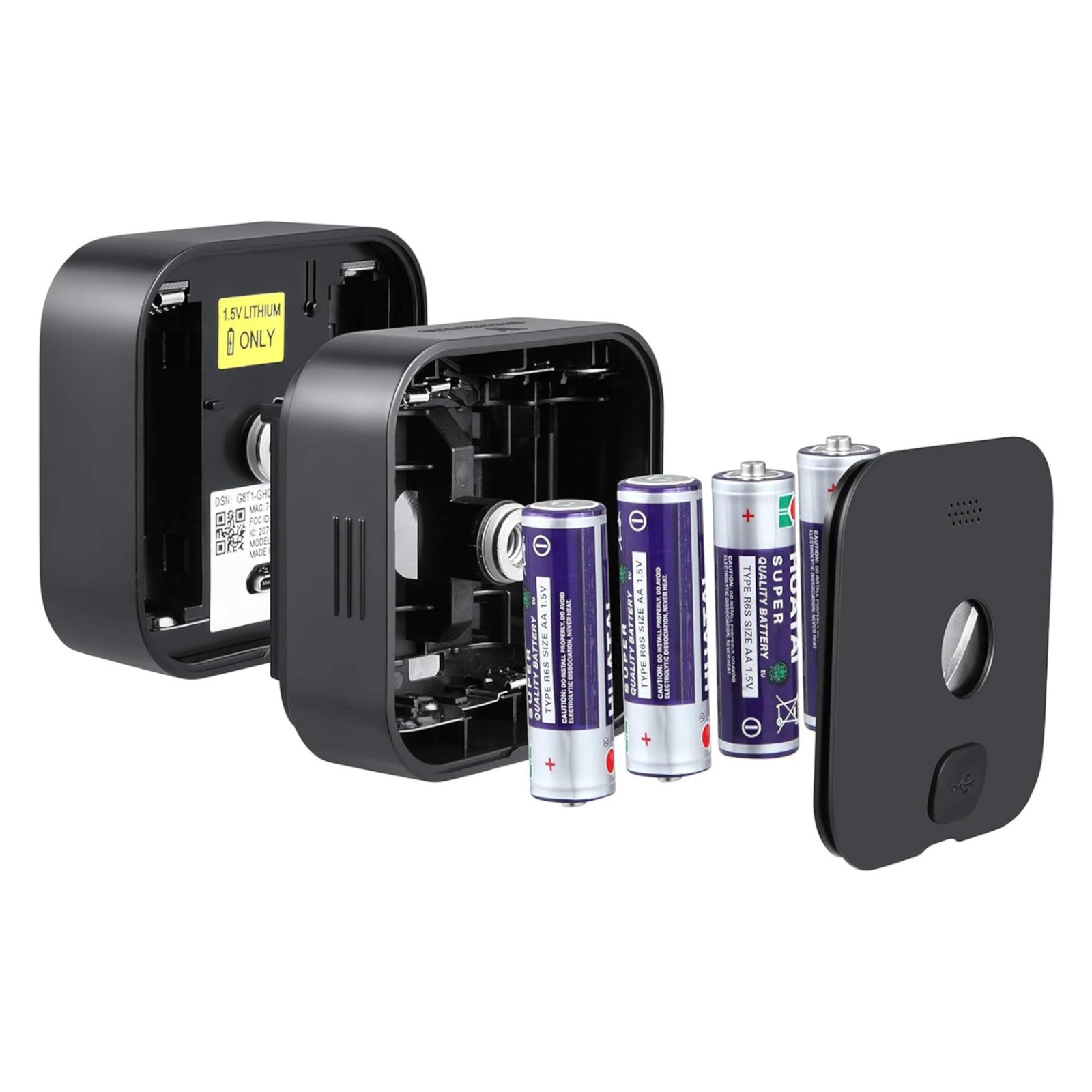 Simplemente inserta 4 pilas AA en el compartimento de baterías de la extensión de batería y conéctalas a tu cámara Blink. (Pilas no incluidas)