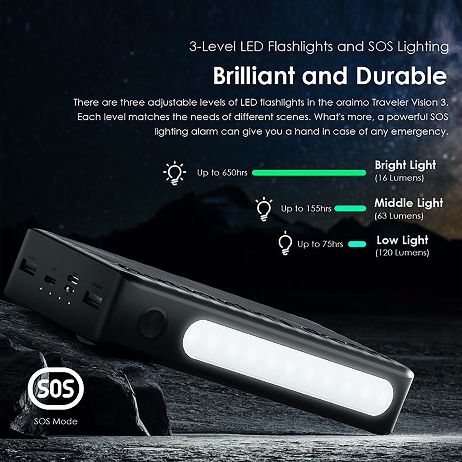 ● Hasta 650 horas de tiempo de iluminación.