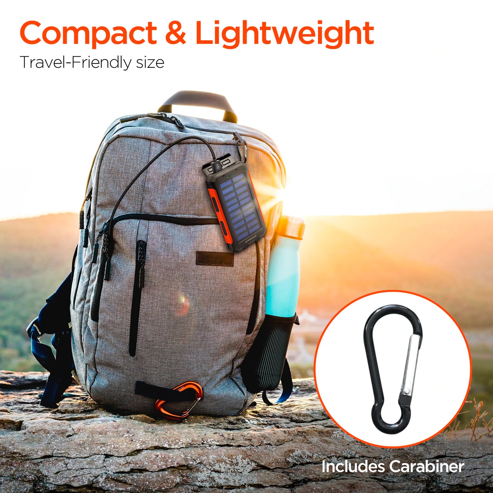 Powerbank Solar Usb Hypergear IPX5 10000mAh Linterna Brújula