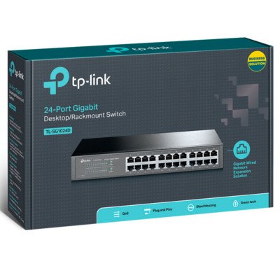 El conmutador Gigabit Ethernet le ofrece una actualización estandarizada y de alto rendimiento, fácil de usar y de bajo costo para mejorar la red anterior a una red de 1000Mbps. Los 24 puertos admiten MDI / MDIX automático, sin necesidad de preocuparse por el tipo de cable, simplemente conéctelo y reprodúzcalo. Además, con la innovadora tecnología de eficiencia energética, la TL-SG1024D puede ahorrar energía y el 80% del material de embalaje puede reciclarse, lo que la convierte en una solución ecológica para su red comercial.