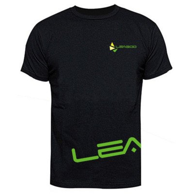 Remera color negro con logo leagoo en verde.
